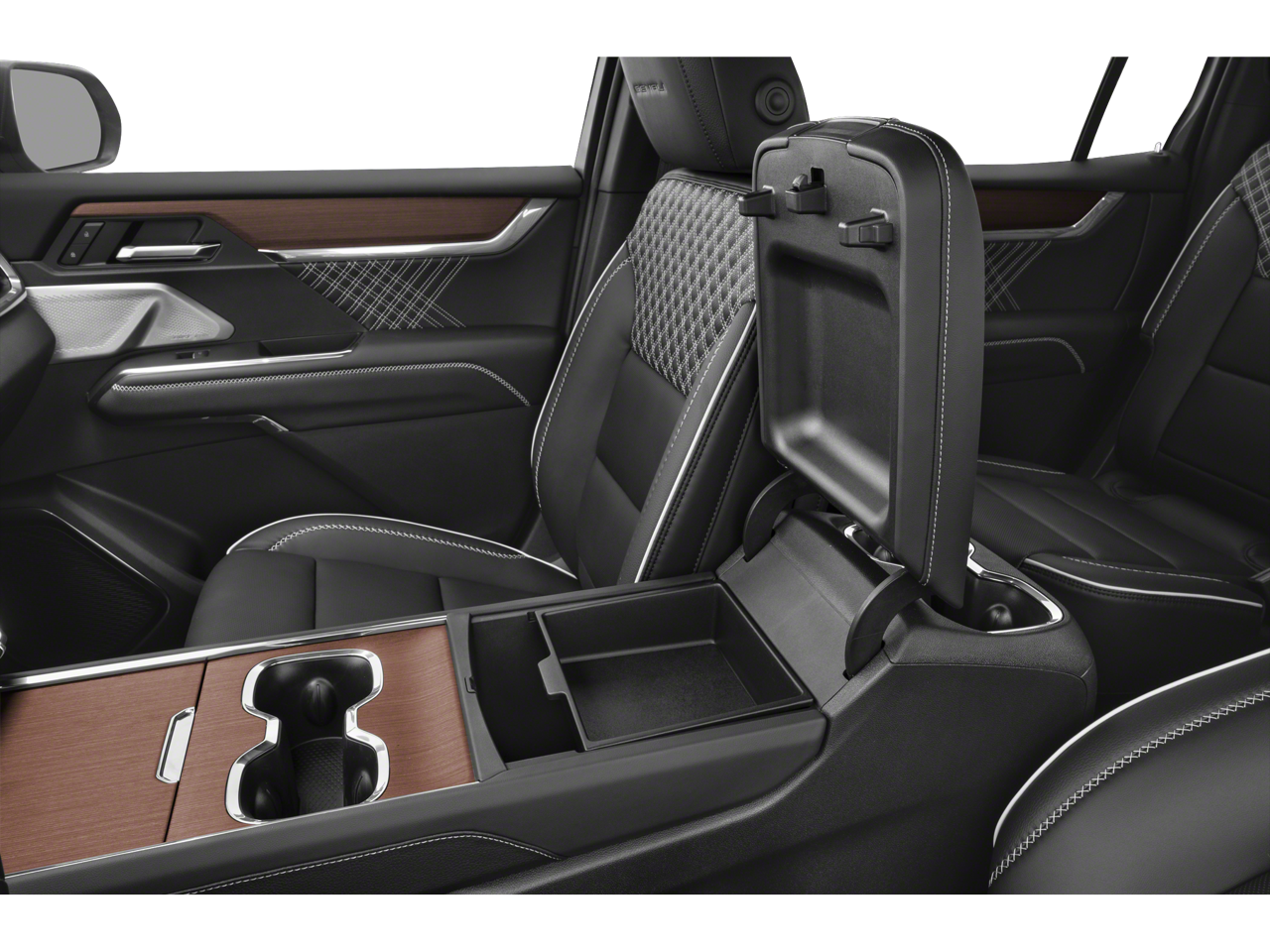 - Armrests rear mounted: Second-row outboard-only mounted armrests